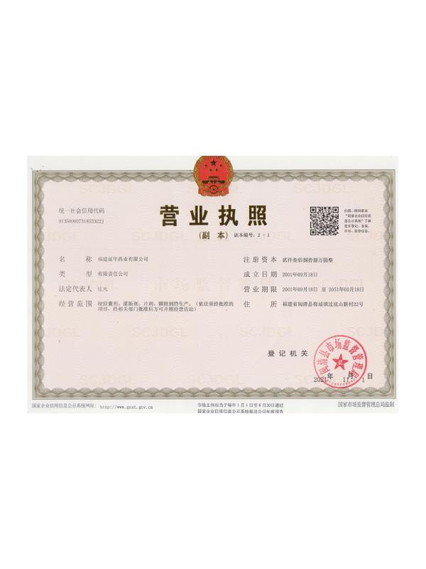 福建延年藥業(yè)有限公司位于福州市閩清縣城關,工廠坐落在風景秀美的梅城森林公園山腳下,公司前身是中國人民解放軍第9747工廠,創(chuàng)辦于1970年9月,隸屬南京軍區(qū)總后勤部,企業(yè)的地方名稱為福建閩清制藥廠。1998年6月為貫徹中央關于軍隊不再從事經商活動的決議,企業(yè)軍轉地改制移交地方,2001年9月企業(yè)改制,更名為福建延年藥業(yè)有限公司。
